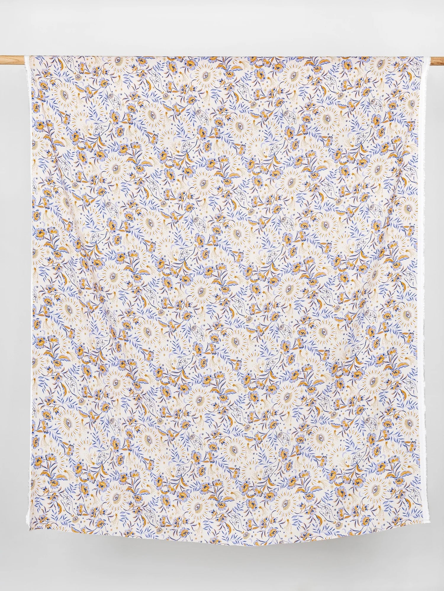 A wearable amulet for the dreamers at heart, this irresistibly soft EcoVero viscose feels almost magical against the skin. Featuring an enchanting design of blooming flowers, illustrated eyes, and delicate hands on a creamy backdrop, it’s a fabric that’s both captivating and versatile. Lightweight with a fluid drape, this beauty comes from our trusted heritage mill in France and is ideal for crafting billowy blouses, flowy dresses, or breezy wide-leg pants. Fully opaque, it’s ready to shine—no lining required.