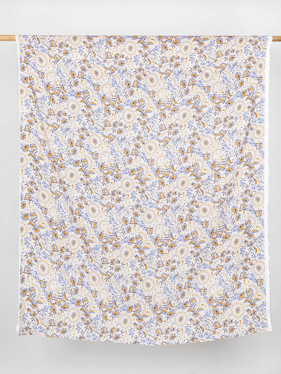 Amulet Print Ecovero Viscose - Cream + Periwinkle + Ochre by Core Fabrics