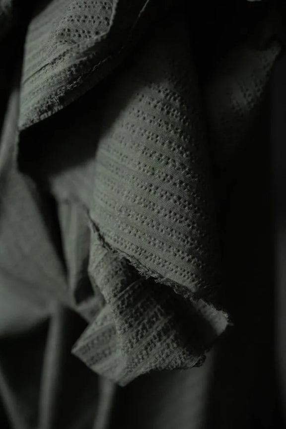 A great textured seersucker stripe in organic cotton, a deep forest green. A unique Merchant & Mills colourway and the perfect weight for autumn shirts, dresses and trousers. We'd make an Ellis or a Niven.