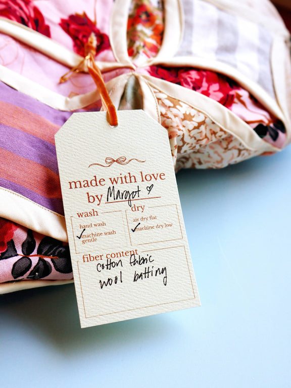 Make knits, quilts, and other precious handmade presents easy to care for, with instructions and fibre content right on the tag.