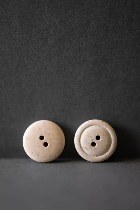 20mm recycled resin button with 4 holes. Off white with warm speckles.