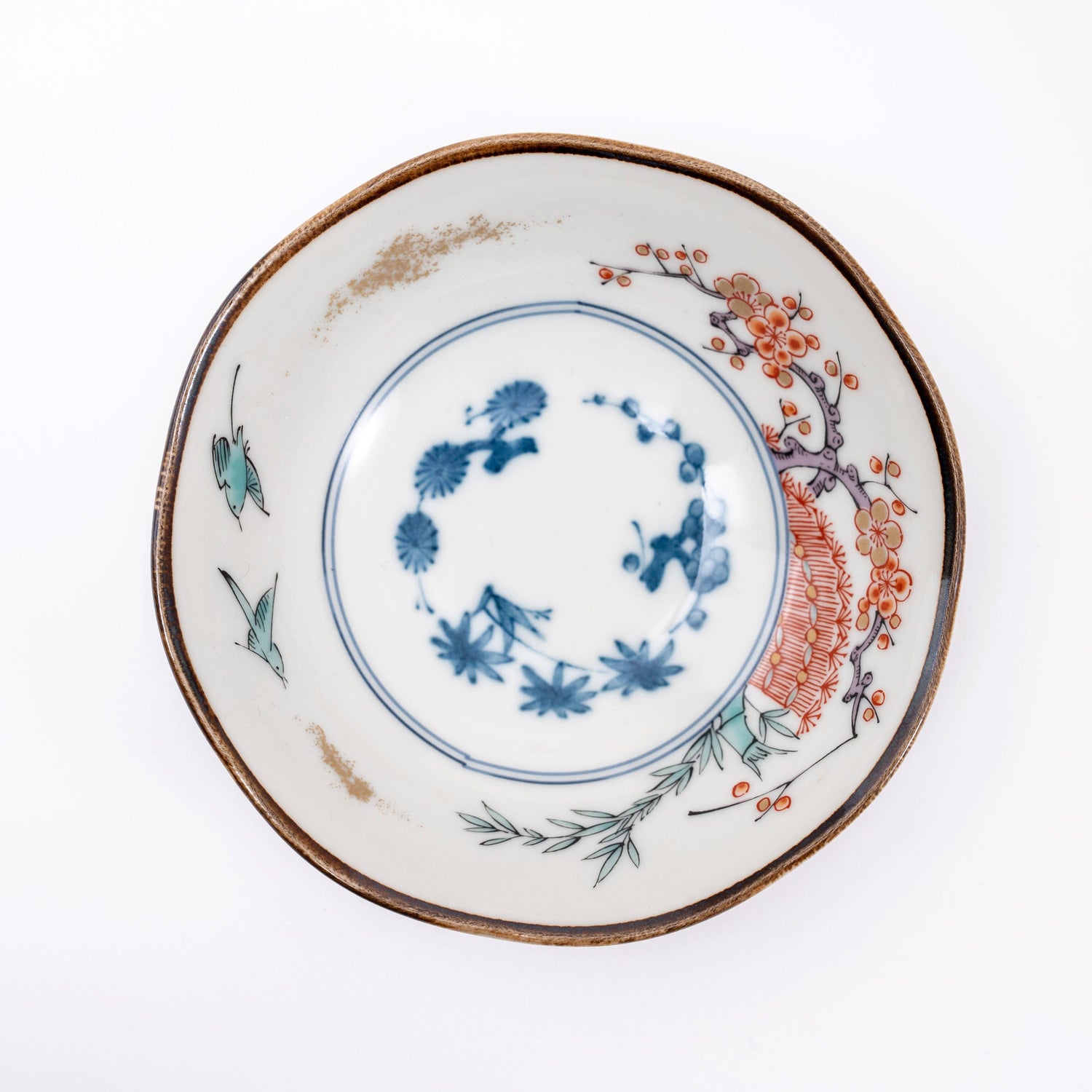Somenishiki is a hybrid of two glazing techniques—sometsuke (染付) and nishiki-de (錦手). This technique involves painting blue-hued patterns under a white glaze and then adding colorful enamel on top to achieve the final effect. It’s a work of art from front to back, and the intricacy of the colors and patterns will leave you in awe for days. This bowl set comes in a giftable box, making it a perfect present for yourself or someone special. It’s suitable for any occasion, whether as a housewarming gift or a holiday surprise!